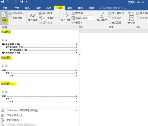 3. 然后點頂部的引用,找到目錄那個位置,點下拉箭頭,選自定義目錄,按自己需要設置一下格式啥的,確認就行。