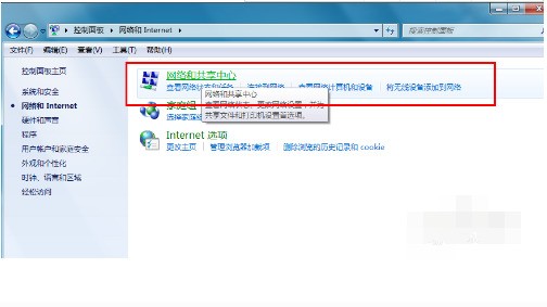 3、點擊網(wǎng)絡(luò)和共享中心。