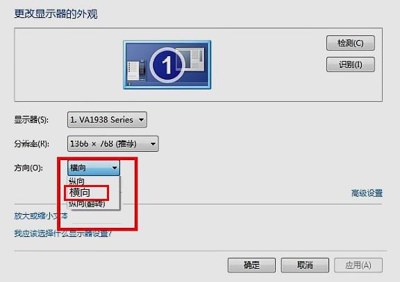 3、然后,點擊下拉菜單中選擇“橫向”,再點擊“確定”。如下圖所示: