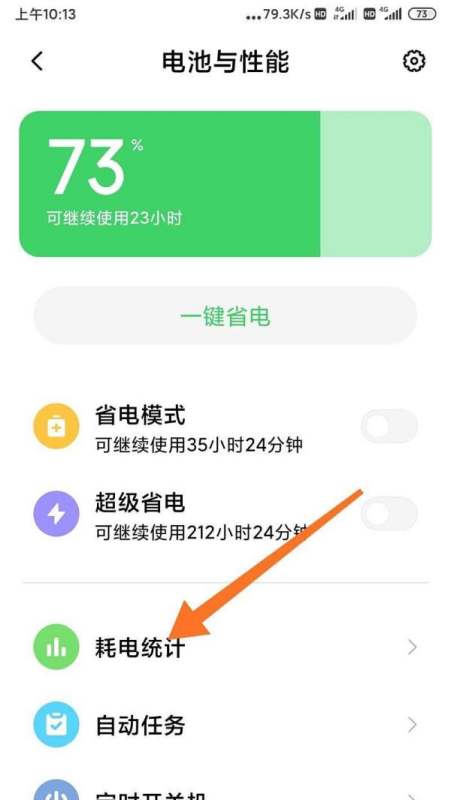 查看耗電統計:在“電池與性能”界面中,直接點擊“耗電統計”選項。系統將展示各應用或硬件的耗電詳情,包括耗電量占比、使用時間等數據。