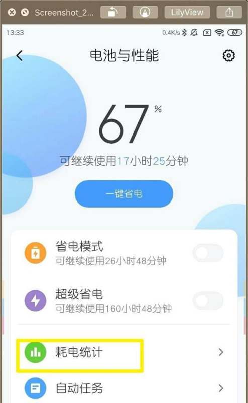 在小米手機上,打開設置→電池與性能,即可查看耗電統計,顯示各應用耗電情況及電池使用詳情。