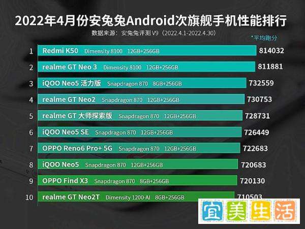 四月手機性能榜中,天璣9000無緣旗艦榜第一,紅米K50奪得次旗艦榜首,具體榜單情況如下: