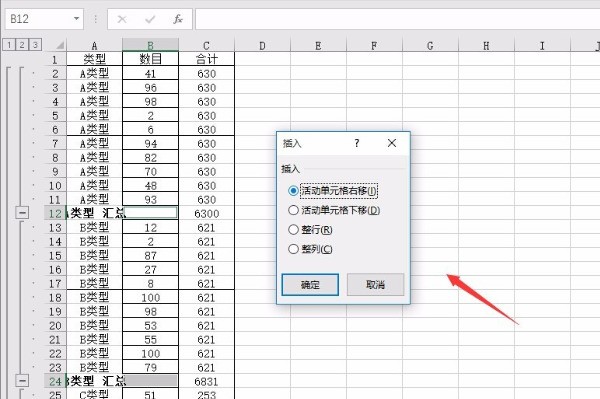 3、在數(shù)目的對應(yīng)列中,我們還一樣,進(jìn)行定位,這次是空值,然后右鍵,選擇插入的獨(dú)坐非職步每飯無整木單元格,插入選項(xiàng),改為活動單元格右移;