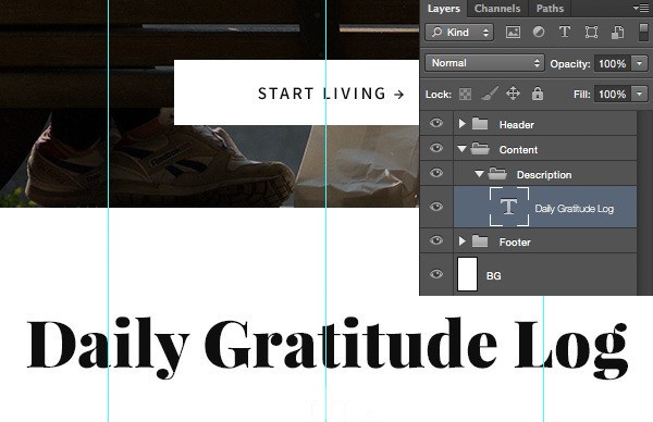 創建“Email”分組,然后回到前一個分組找到大標題圖層,Ctrl+J復制移動到新建圖層。修改大標題:Create Gratitude Log。