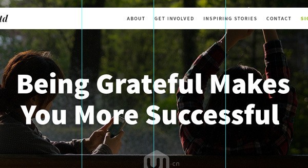 Header,或者叫做“網頁頭部”,他是網頁中最明顯的部分,在網頁中起到吸引用戶、留住用戶的重要作用。為了表達感恩的主題,將在首頁頂部使用一張兩人坐在長椅上的照片,其中一個人抬起手,可以看出很愉快的心情。