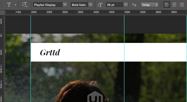使用文字工具,選擇顯眼的字體Playfair Display (Black) ,60px。保持一定的邊距空間,沿header圖片再下移100px。