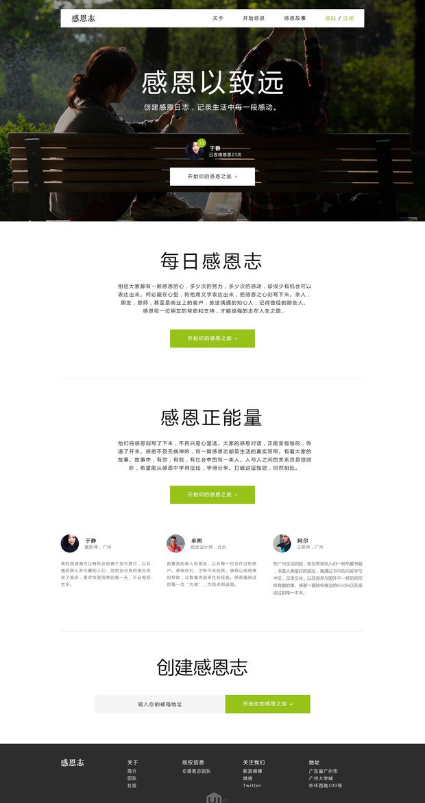 再增加一些展示,以增強網站吸引力,留住訪客。由于感恩日志是基于感謝的事物這樣的私事上面的,所以大眾口碑是一個不錯的選擇,展示用戶的使用感受,更易于貼近大眾。