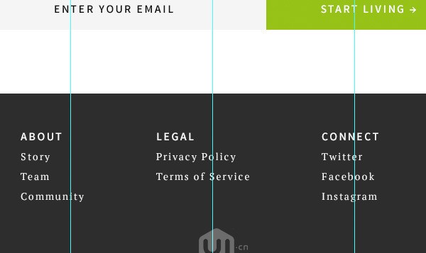完成“Get Inspired”分組后,轉戰這個內容區域的最后一部分。最后的Call To Action 要帶上更多的細節,鼓勵訪客輸入Email地址注冊。