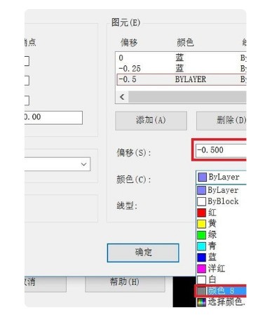 5、先設置2-4元素信息。單擊第二個元素并在下面的紅色框中輸入信息。偏移量:寫入0.25,顏色,選擇藍色。根熱周場查控洋準據個人需要上色。