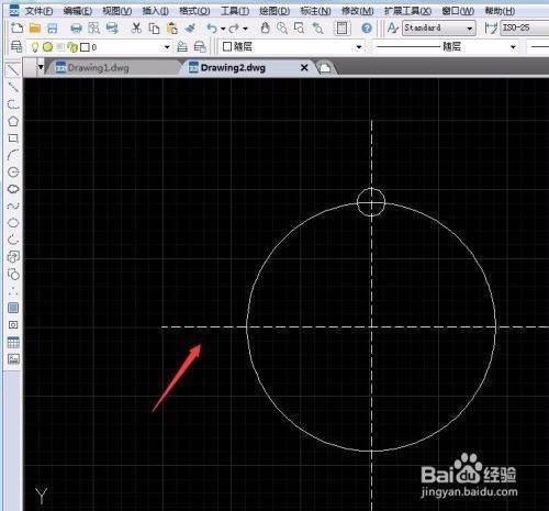 第一步我們打開CAD軟件 我們先來畫一個中心線,這條中心線要用虛線畫好區分,然后我們畫一個圓形,在圓形的邊上再畫一個小圓