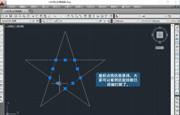 7、鼠標點擊如下圖所示的這些線兄攜段可以看到,已經被打斷了。