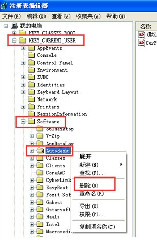 2、點開始-運行-輸入rededit,然后找到AutoCAD的注冊表刪除掉即可再次安裝,如圖所示。