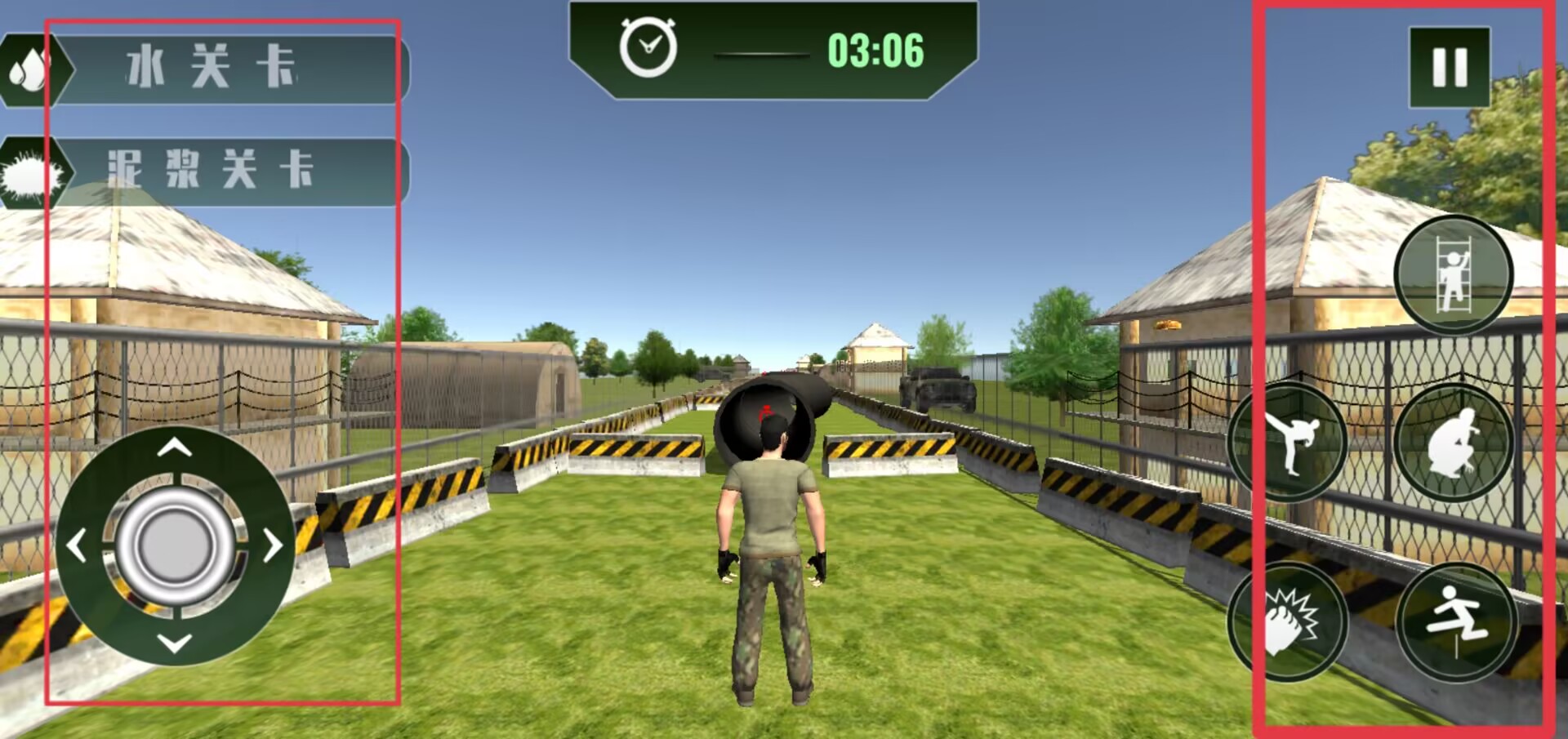 3、訓練過程中頂部顯示剩余時限,左側配置進度條與移動控制,右側集成戰術動作快捷指令。