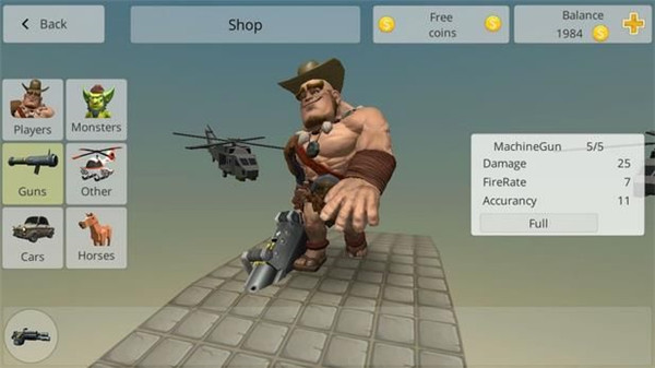 2、在眾多槍里選機(jī)槍可以看到有一個方框,里面有數(shù)字和有一個升級按鈕,旁邊的金錢代表升級要花的錢數(shù),攢夠錢,升級到滿級,就幾槍一個人