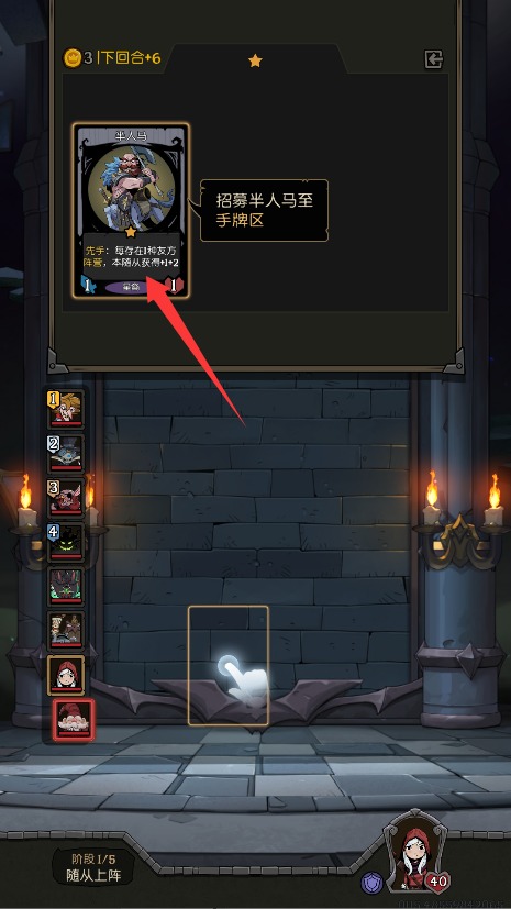 2、從招募區點擊拖動半人馬卡牌至手牌區域,將其納入當前可用的作戰陣容體系。