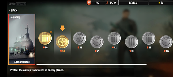 2、目前我們只能選擇第一個關(guān)卡,點(diǎn)擊第一個關(guān)卡進(jìn)入游戲;