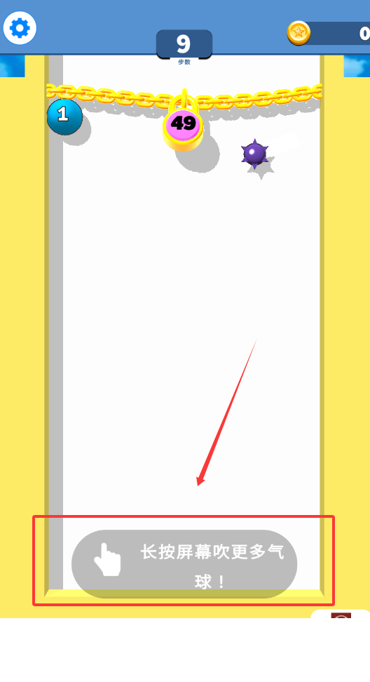 1、游戲開始時需持續按壓屏幕為氣球充氣,觀察場景內飛動的尖刺與移動障礙,在氣球膨脹過程中保持靈活移動。