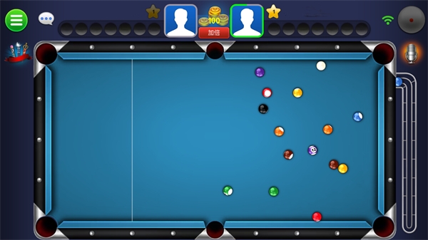 3、開局根據進球的顏色來區分你與對手的擊球類型,分為雙色球和全色球,為了幫助新手玩家更好的識別,挪動到對方的顏色球上會顯示紅色,表示不可擊球;而且在玩家頭像的左側有桌上球的數字編號,每當成功擊球進袋,則會顯示為空白,直到將桌上屬于你的臺球全部進袋,即可獲勝!