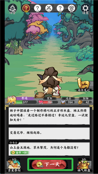 1、進入游戲界面,點擊下一天,開始每天的冒險。