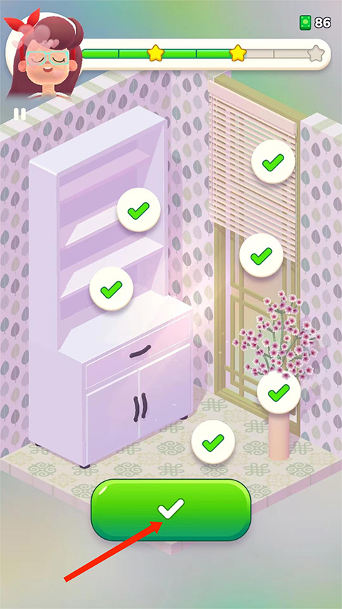 11、點擊【五角星】圖標(biāo),會有裝修任務(wù)提示,選擇合適的家具放置完成后女主人會有反饋,