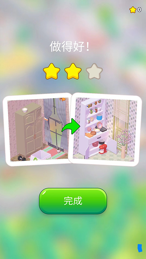 13、每次完成關(guān)卡后都可以得到相應(yīng)的星星獎勵,然后獲取設(shè)計方案,玩家需要不斷完成任務(wù)幫助自己更好地裝飾新家,以上就是裝飾人生的游戲玩法了。