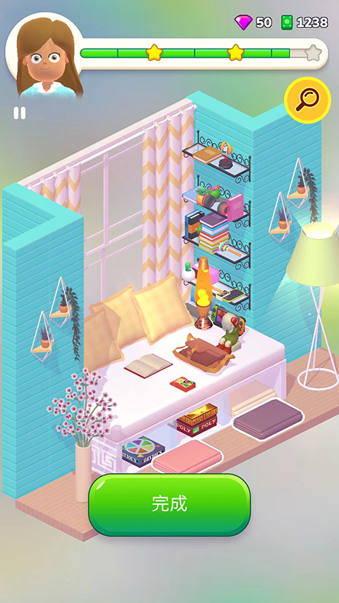 2、每一次關(guān)卡挑戰(zhàn)完成,都能獲得大量的鉆石獎勵,鉆石可以解鎖更多實用的家具